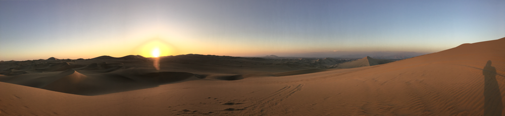 Nach dem lustigen Sandboarding machten wir uns wieder mit unserem Batmobil in Richtigung Huacachina und genossen unterwegs noch den sensationellen Sonnenuntergang bei einer Düne. Es war gewaltig und einer der schönsten Sonnenuntergänge die ich bis jetzt gesehen habe. Umgeben von Sand und lauter nichts konnten wir die letzten Minuten der Sonne an dem Tag geniessen. Hier die Impressionen dazu: